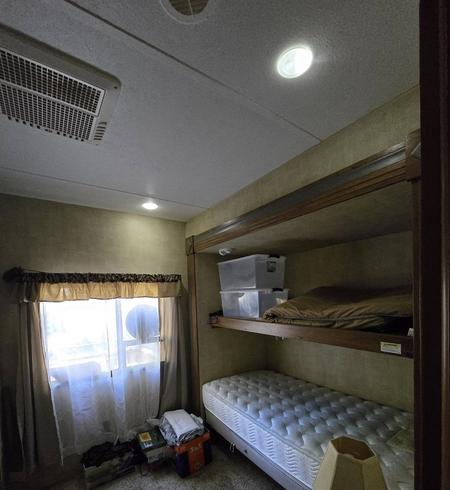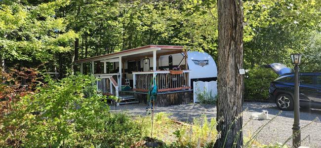 2014 41' Residence Park Model Trailer. Large Master bedroom with plenty of storage. Large bunk room also has plenty of storage. One and a half bathrooms and plenty of space in kitchen and living area. Living space boasts a recliner and a small sectional couch. New carpet in master bedroom and living area. Bunkroom carpet is still like new. Enjoy front and back decks to enjoy in the good weather. Back deck has peek-a-boo views of the water. Beautiful 3 season room with large windows which bring the outside in. Room is 30' x 9'. This room has an additional refrigerator in it. The site boasts a large yard with a firepit and swing to enjoy . Plenty of firewood to build warm fires at night. The campground has many things to offer for all ages. Plenty of activities, nice beach for children and adults to enjoy, horse shoes pit, play shuffle board with the family or just relax in the sun at the beach. Most items will remain with the trailer with the exception of a few that we will be taking with us. Pictures to come soon as camping season is almost over I am in the process of cleaning everything up and straightening out.